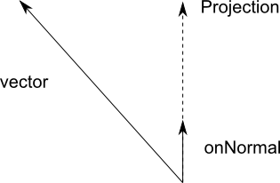 要理解向量投影,请想象 onNormal 位于一条指向其方向的线上。 这条线上有一个最靠近 vector 尖端的点。 投影不过是重新缩放 /onNormal/,以使其到达线上的那个点。